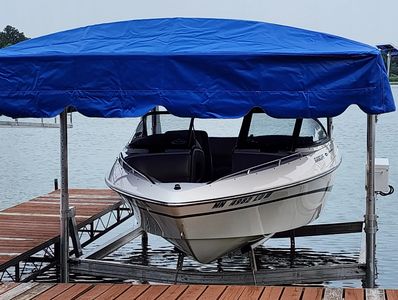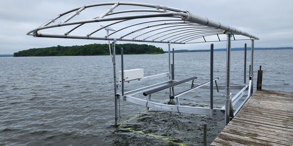 Tidal Hydraulic 6k Boat Lift with 26' canopy and 36" drop valance.